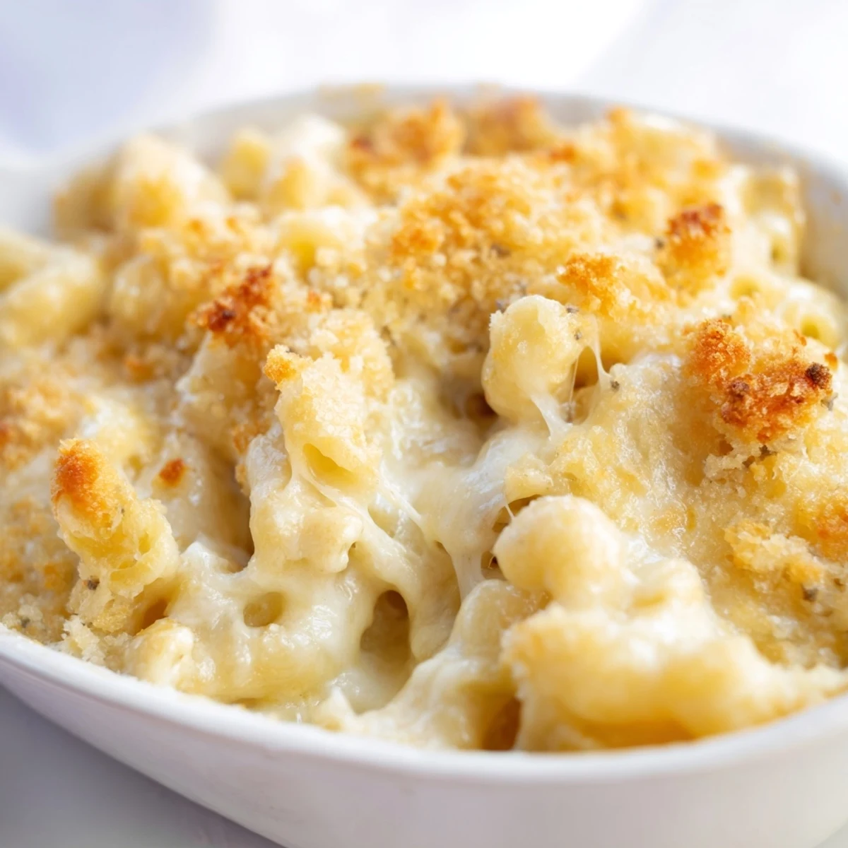 The combination of whole milk, butter, and flour creates a velvety béchamel base. Three melted cheeses—sharp cheddar, Gruyère, and mozzarella—add layers of richness and depth.