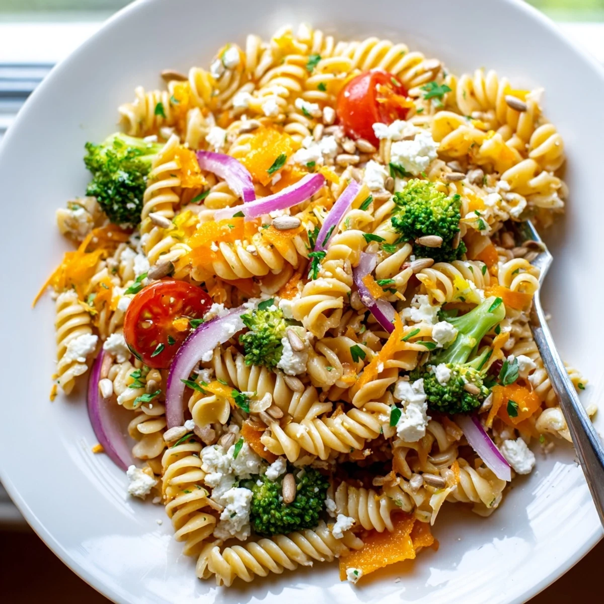 What makes this dish special is how the broccoli gets blanched right alongside the pasta during the final minutes of cooking—this simple technique ensures both elements are perfectly tender-crisp without any extra effort. The creamy feta adds a tangy richness that balances the bright citrus notes, while toasted sunflower seeds contribute a satisfying crunch.