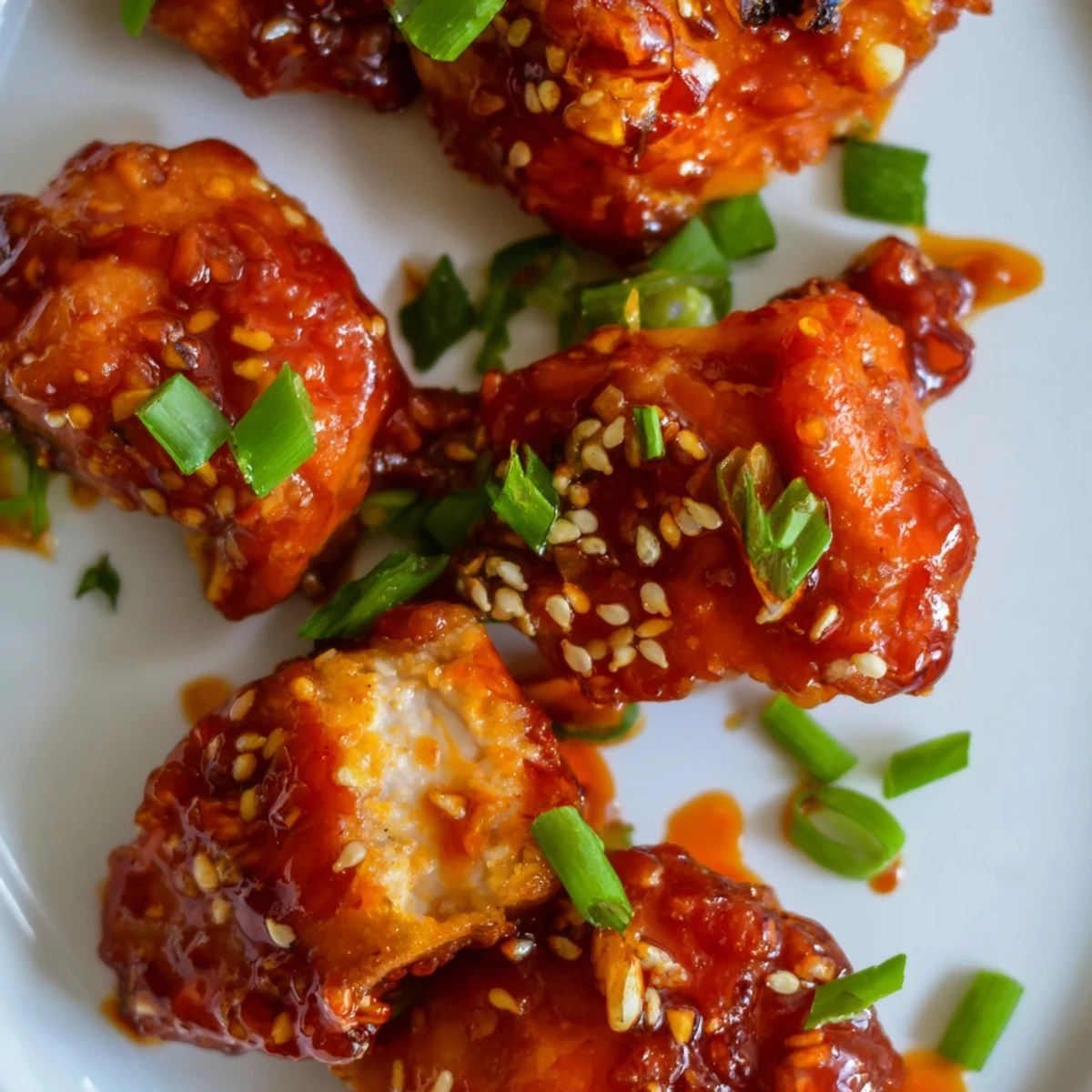 - Arrange the freshly glazed chicken bites on a serving platter. Sprinkle generously with chopped cilantro or green onions and toasted sesame seeds, if using, then serve immediately with toothpicks for easy snacking.