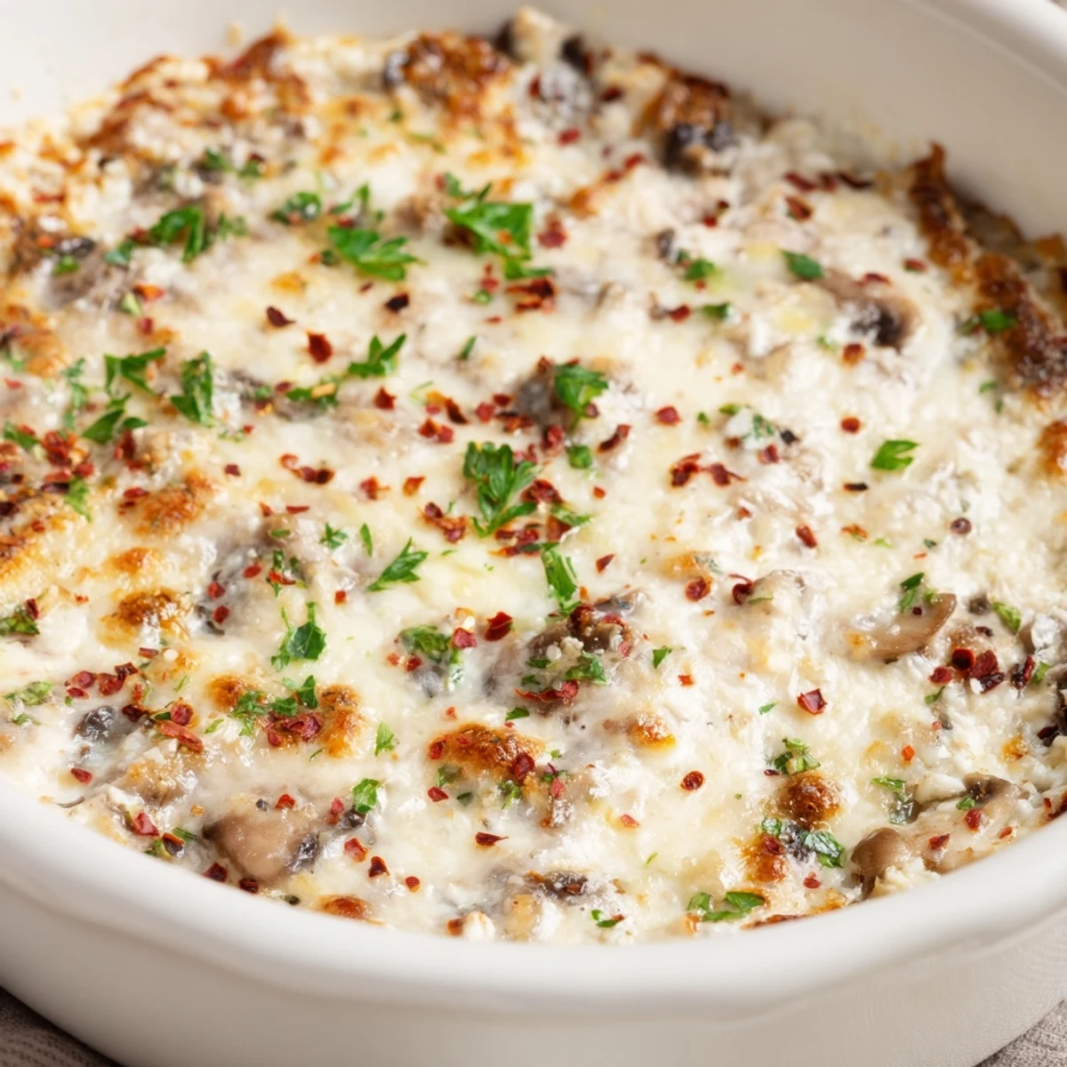 Sometimes I add crumbled cooked bacon if I am serving meat eaters, and honestly the combination is pretty incredible. Gruyère or Swiss cheese can replace the mozzarella if you want something more sophisticated. The mushroom base is so forgiving that most variations just work.