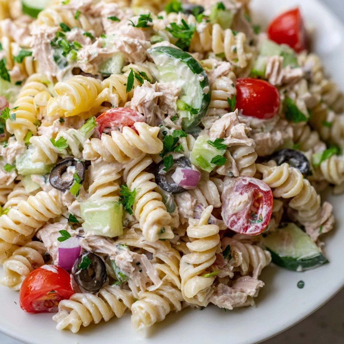 This cold pasta dish combines tender fusilli with protein-rich tuna and fresh vegetables like cherry tomatoes, cucumber, and celery. The creamy dressing blends mayonnaise with Greek yogurt, Dijon mustard, and lemon for a tangy finish. Ready in 25 minutes, it's ideal for meal prep, outdoor gatherings, or quick weekday lunches. Chill for 30 minutes before serving to let flavors meld together perfectly.
